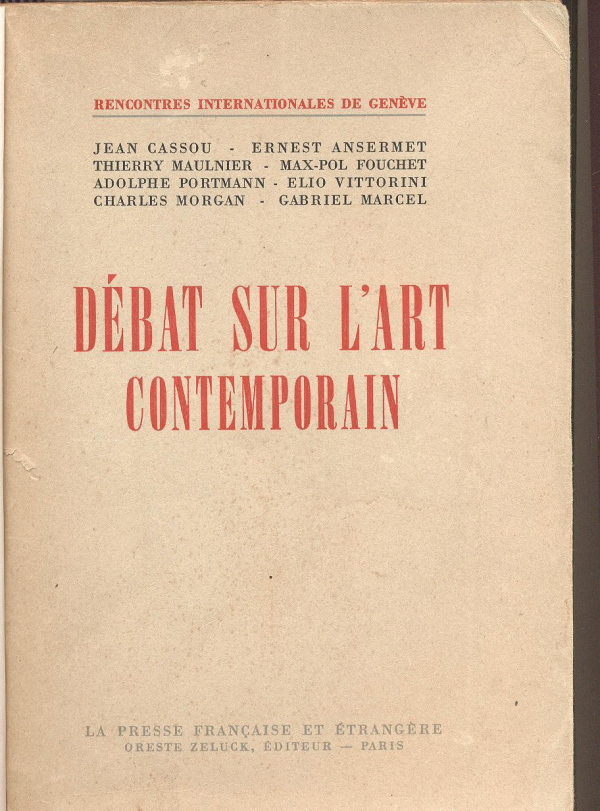 Débat sur l'art contemporain : textes des conférences et des entretiens / organisés par les Rencontres Internationales de Genéve ; 1948