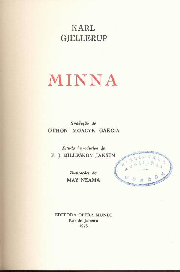 Minna / Karl Gjellerup ; tradução de Othon Moacyr Garcia ; estudo introdutivo de F. J. Billeskov Jansen ; ilustrações de May Neama