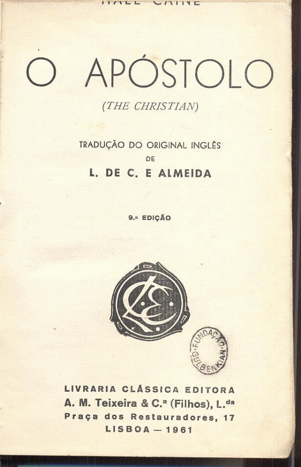O apóstolo = The christian / Caine Hall ; tradução do original inglês de L. de C. e Almeida