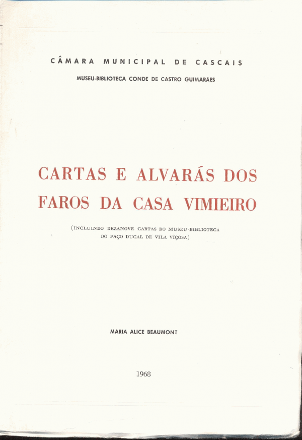 Cartas e alvarás dos Faros da Casa Vimieiro : incluindo dezanove cartas do Museu-Biblioteca do Paço Ducal de Vila Viçosa / Maria Alice Beaumont