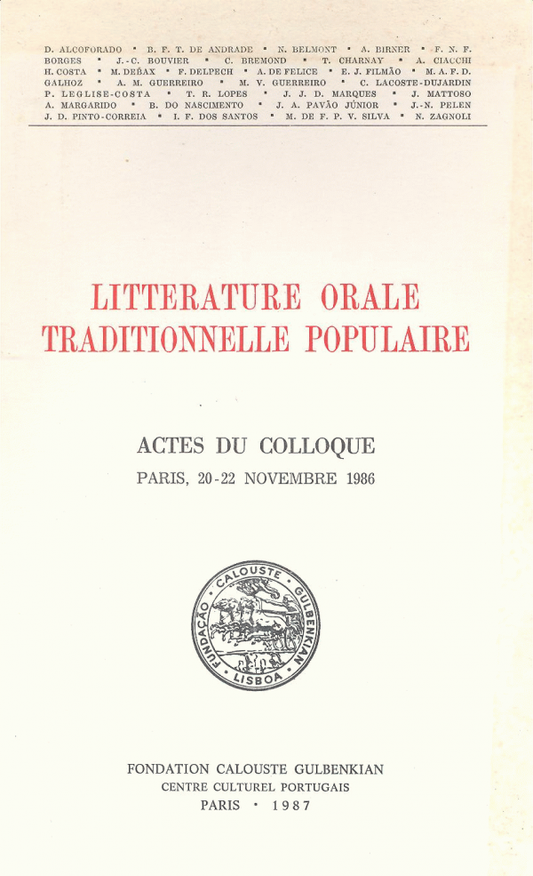 Actes / Colloque "littérature orale traditionnelle populaire" ; org. Centre Culturel Portugais ; Fondation Calouste Gublenkian