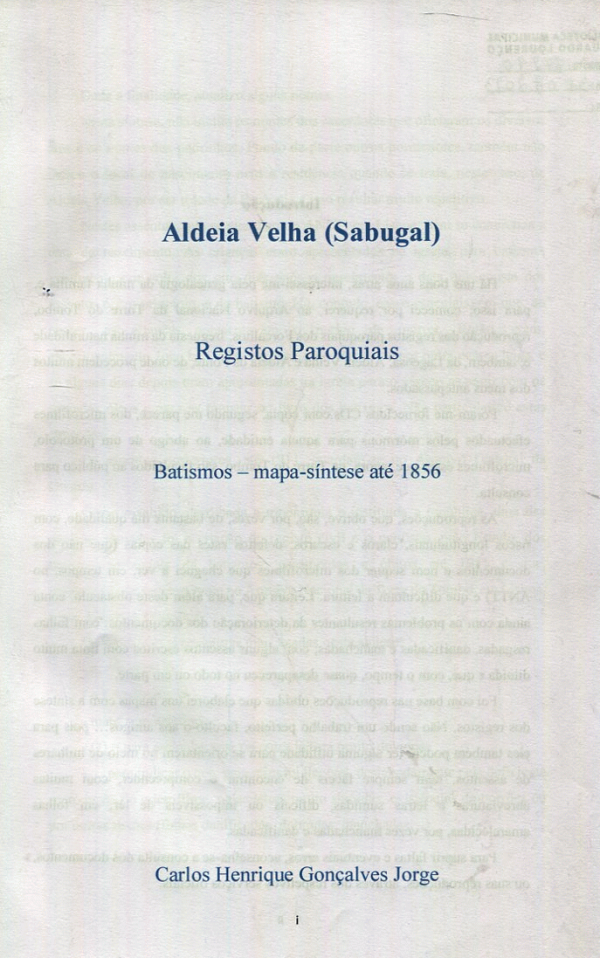 Aldeia Velha (Sabugal) [Texto policopiado] : registos paroquiais : batismos : mapa-síntese até 1856 / [compil.] Carlos Henrique Gonçalves Jorge