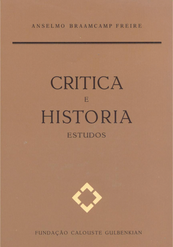 Crítica e história : estudos / Anselmo Braamcamp Freire ; estudo introd. José V. de Pina Martins