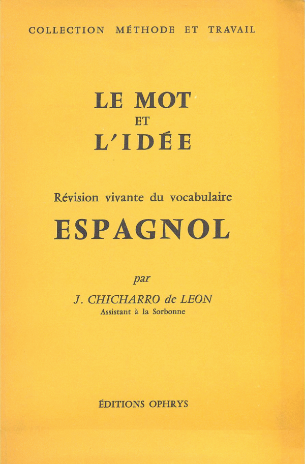 Le mot et l'idée : révision vivante du vocabulaire espagnol / J. Chicharro de Leon Publicação: [S.l.] : 1968, OphrysDescrição: 131 p. ;