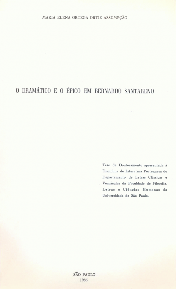 O dramático e o épico em Bernardo Santareno [texto policopiado] / Maria Elena Ortega Ortiz Assumpção ; sob a orientação da Professora Drª. Maria Aparecida Santilli Publicação: São Paulo : 1986, [s.n.]Descrição: 178 p. ;
