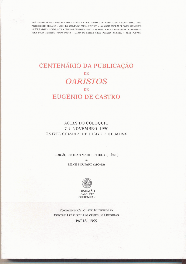 : actas / Colóquio Centenário da Publicação de OARISTOS de Eugénio de Castro ; ed. lit. Jean Marie D'Heur ; ed. lit. René Poupart