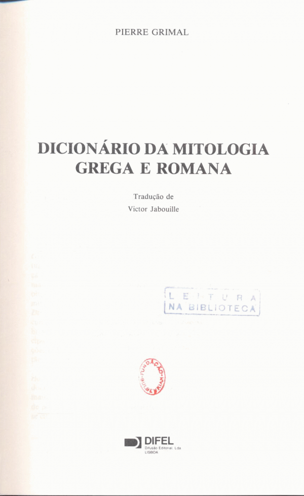 Dicionário da mitologia grega e romana / Pierre Grimal ; trad. de Victor Jabouille Publicação: Lisboa : 1992, DifelDescrição: LII, 554 p. ;