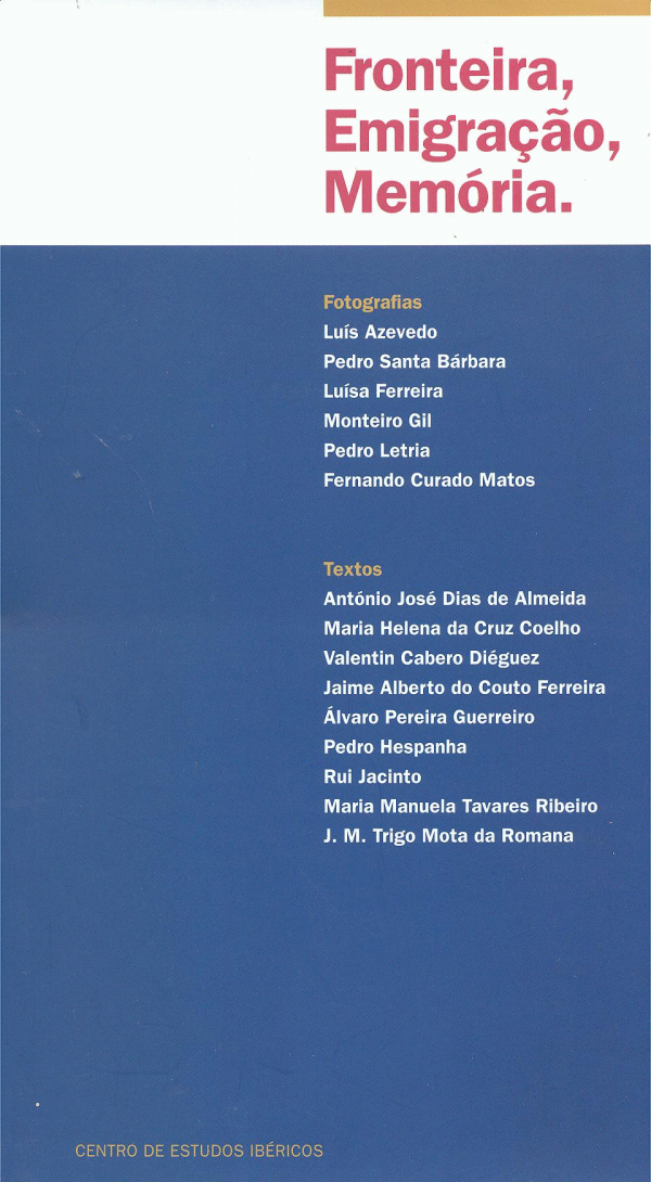 Fronteira, emigração, memória : exposição de fotografia / [org.] Centro de Estudos Ibéricos ; fotografias Luís Azevedo... [et al.] ; textos António José Dias de Almeida... [et al.] Publicação: Guarda : 2004, Centro de Estudos IbéricosDescrição: 95 p. :