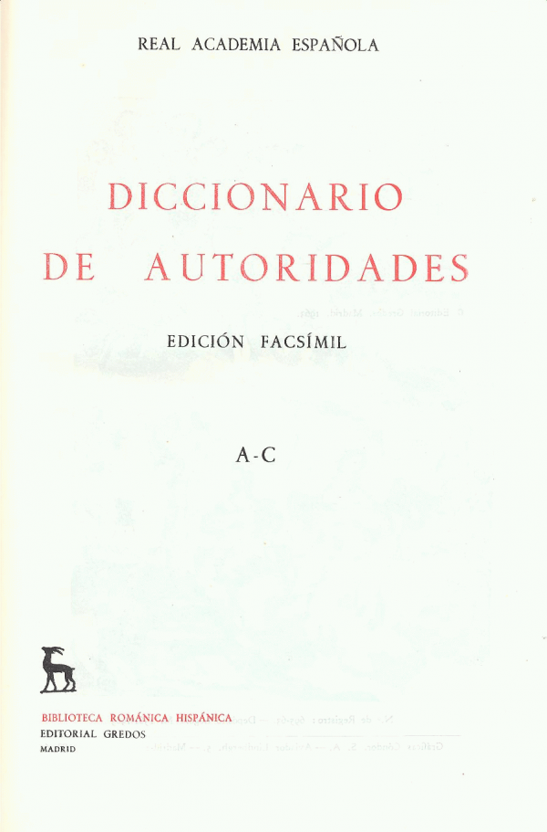 Diccionario de autoridades : A-C / ed. lit. Dámaso Alonso Publicação: Madrid : cop. 1963, GredosDescrição: 3 vol. ;