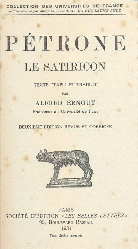 / Pétrone ; texte établi et traduit par Alfred Ernout